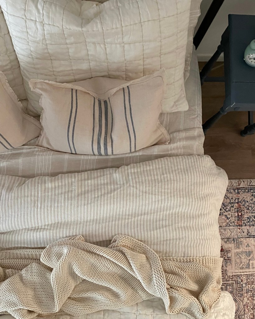 - A double light sconce for over our dresser. The only light that I really splurged on. I wanted something special for this little nook in between our bathroom and closet. This one is perrrrrfect. I thought that three lights would feel too much like a bathroom, and one light sconce wouldn’t fill the space right. I’m glad that I spent a little extra on something I felt was really perfect.