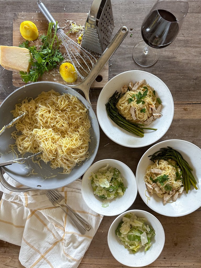 2-3 cooked chicken breasts, shredded- you can make in the crock pot, or just buy a rotisserie chicken!
