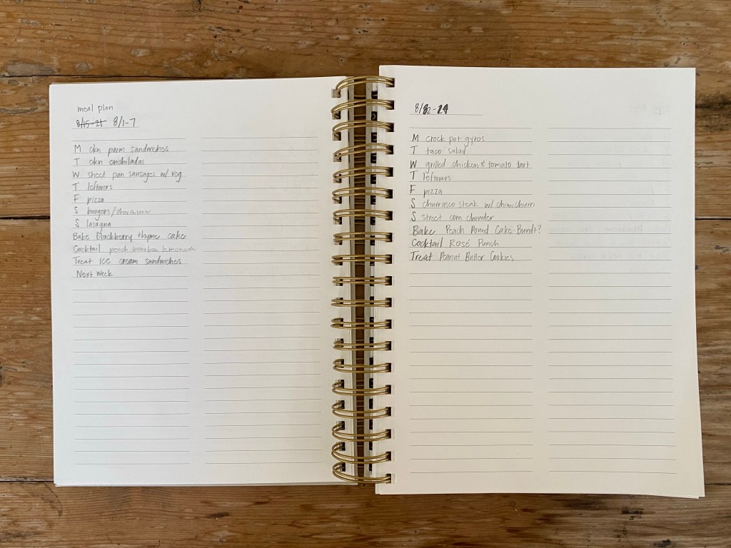 a place for meal planning – longer than just a few lines. I like to have space to write down ideas for the next week, things to bake that week, things to drink, snacks to have on hand, breakfasts we’d like to have. A tiny little box just isn’t enough for me.